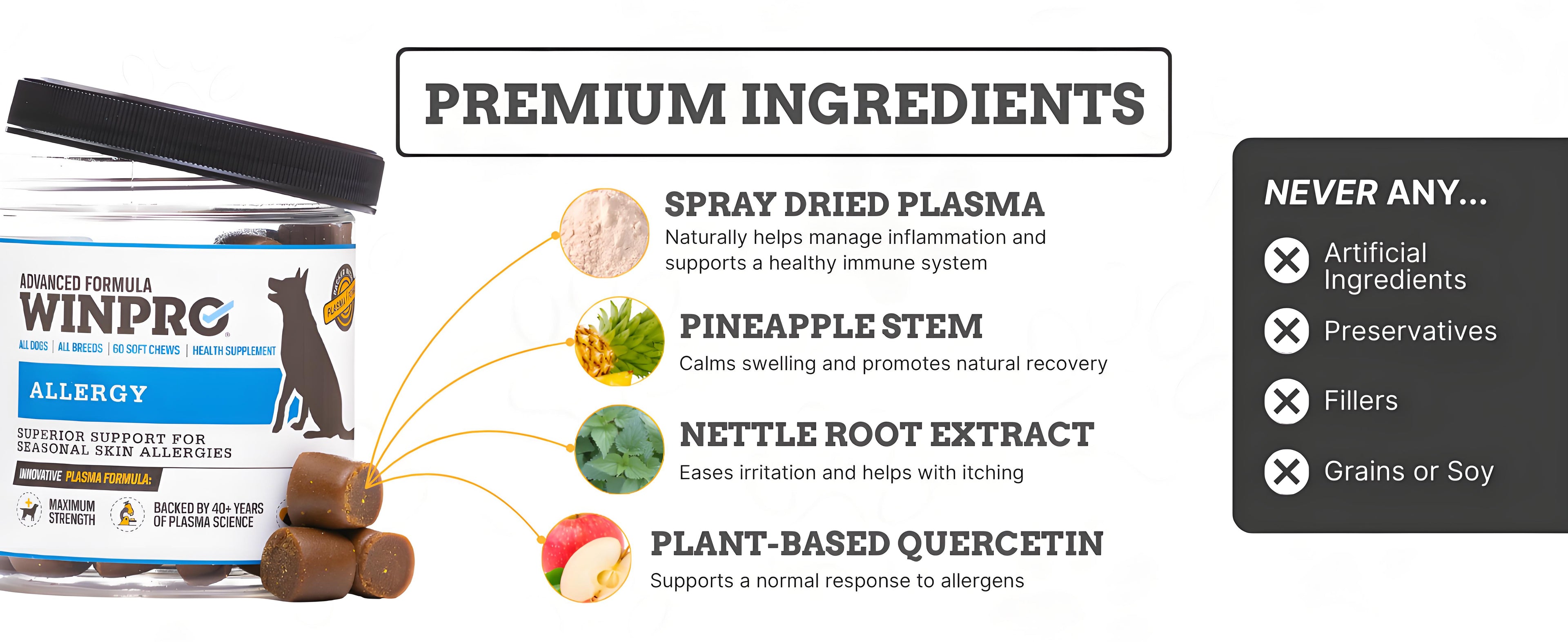 You’ve probably tried a lot of things, each with its own tradeoffs. Some aren’t designed for everyday use. Others focus on the surface instead of supporting what’s happening inside. And many just don’t seem to last. WINPRO Allergy takes a different approach with a plasma-powered formula you can use every day—built to support your dog’s immune system and help keep them feeling their best.